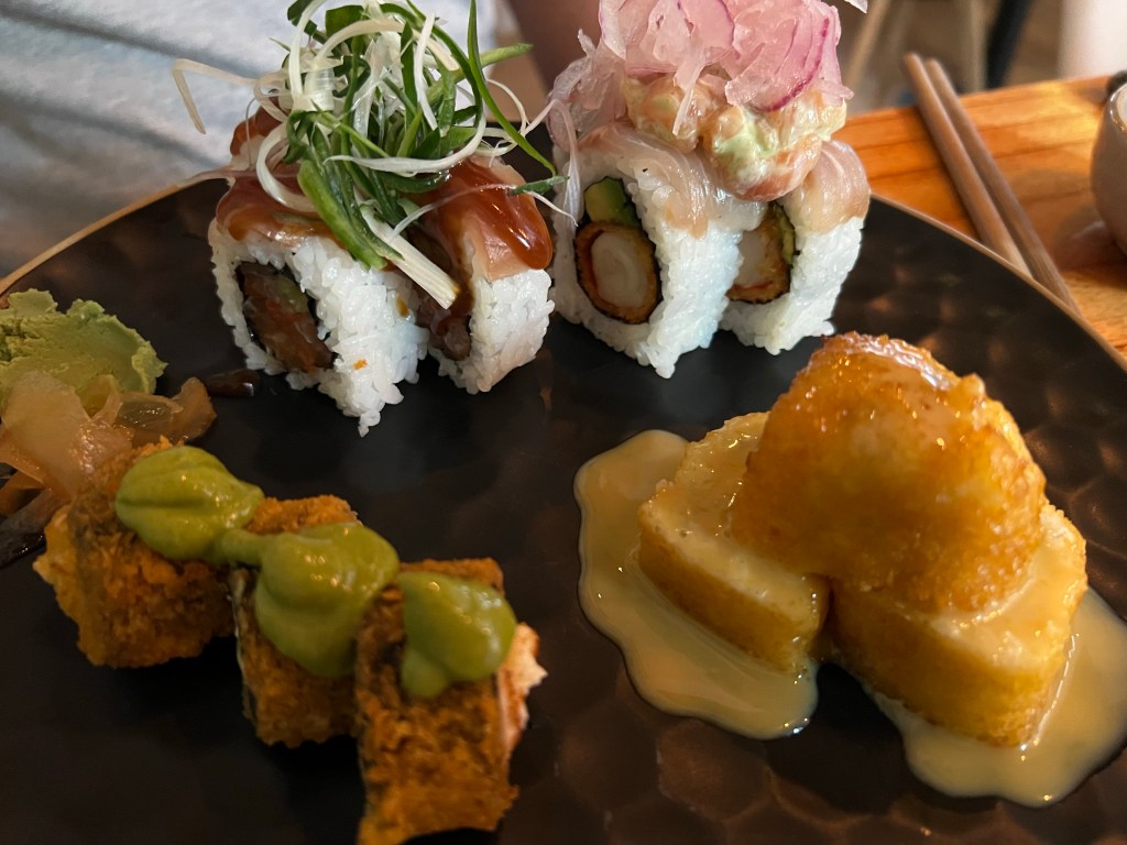 An unassuming and fresh-looking small venue with a friendly co-owner in front-of-house serving up amazing sushi with his chef team visibly hard at work. But don’t just stop there – their ‘MINIDISHES’ menu is a winner with the meatiest ‘SUPER MEAT ROLLS’ springrolls ever and their prawns and gyozas left us craving more.