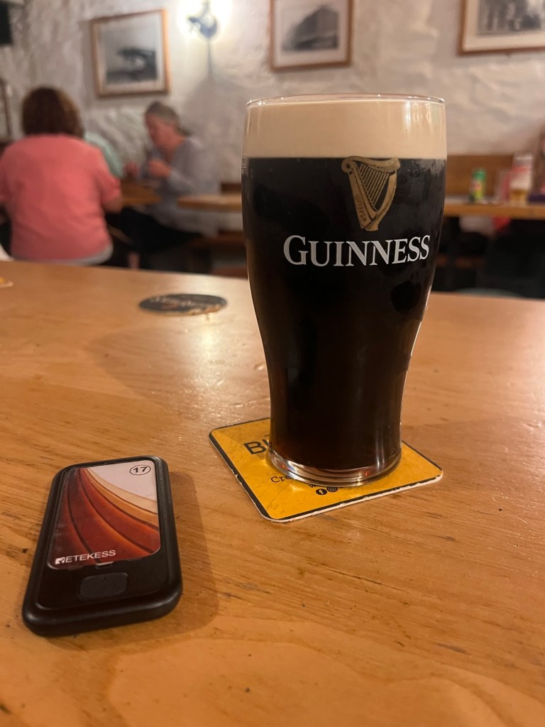 I checked into my accommodation just after 19:30 and got my food order in just after 20:00. No time to shower – just to change from the shorts I was wearing in Spain. And I ordered my first and only Guinness in Ireland. And yes! It WAS better than any other Guinness I’d tried.